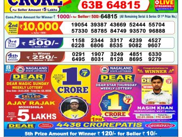 Nagaland State Dear Lottery Result Declared 1PM 31/03/2026