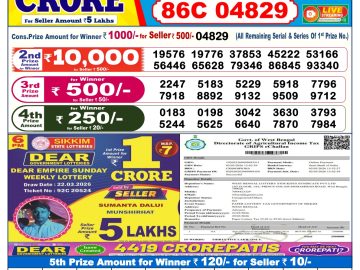 Sikkim State Dear Lottery Result Declared 6PM 23/03/2026