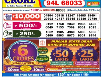 Punjab state dear 20 Monthly Lottery Result 24/03/2026