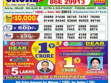 Dear Lottery Sambad Result By Rakhi Lottery Agency