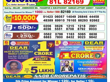 Dear Lottery Sambad Result By Rakhi Lottery Agency