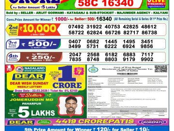 Nagaland State Dear Lottery Result Declared 1PM 23/03/2026