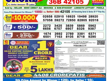 Sikkim State Dear Lottery Result Declared 6PM 16/03/2026