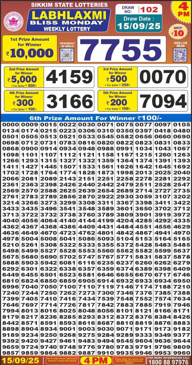 Labh Laxmi Lottery Result Today 4PM 15/09/2025 September 15, 2025 Leave a Comment on Labh Laxmi Lottery Result Today 4PM 15/09/2025 Posted in Lottery Results