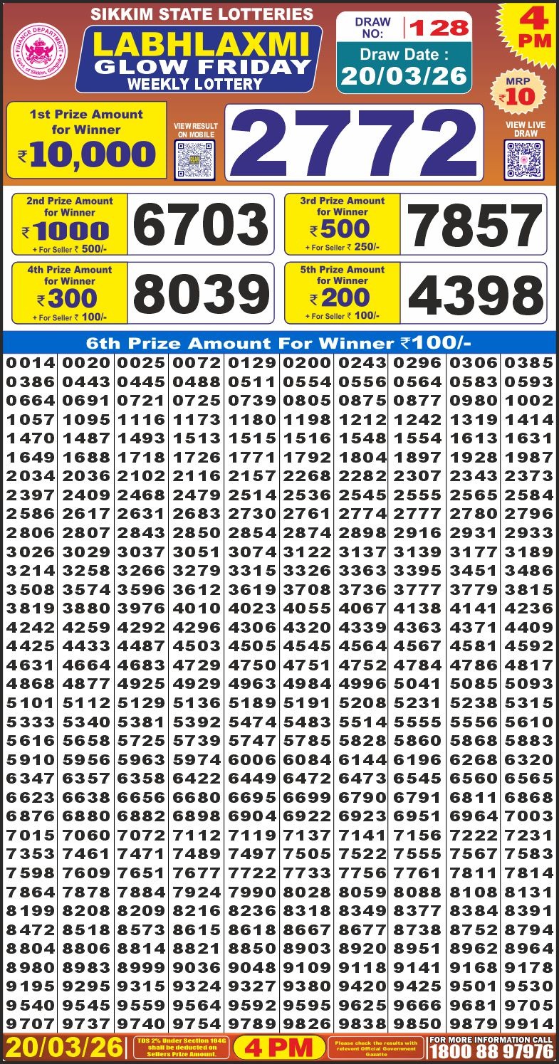 Labh Laxmi Lottery Result Today 4PM 20/03/2026 March 20, 2026 Leave a Comment on Labh Laxmi Lottery Result Today 4PM 20/03/2026 Posted in Lottery Results