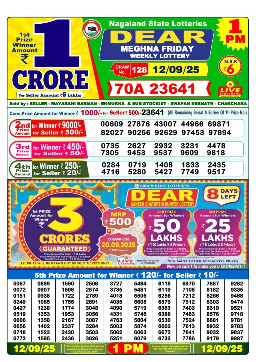 Nagaland State Dear Lottery Result Declared 1PM 12/09/2025 September 12, 2025 Leave a Comment on Nagaland State Dear Lottery Result Declared 1PM 12/09/2025 Posted in Lottery Results