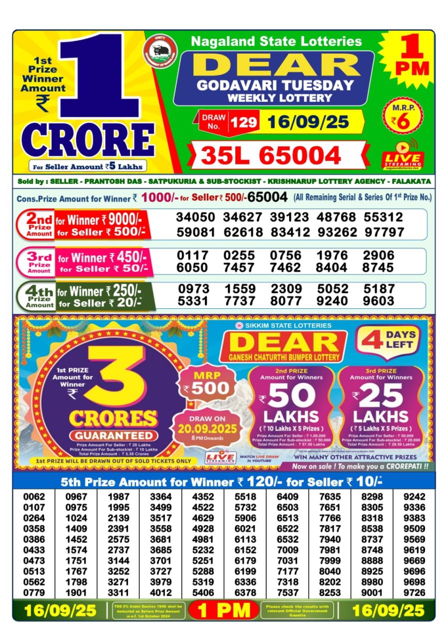 Nagaland State Dear Lottery Result Declared 1PM 16/09/2025 September 16, 2025 Leave a Comment on Nagaland State Dear Lottery Result Declared 1PM 16/09/2025 Posted in Lottery Results