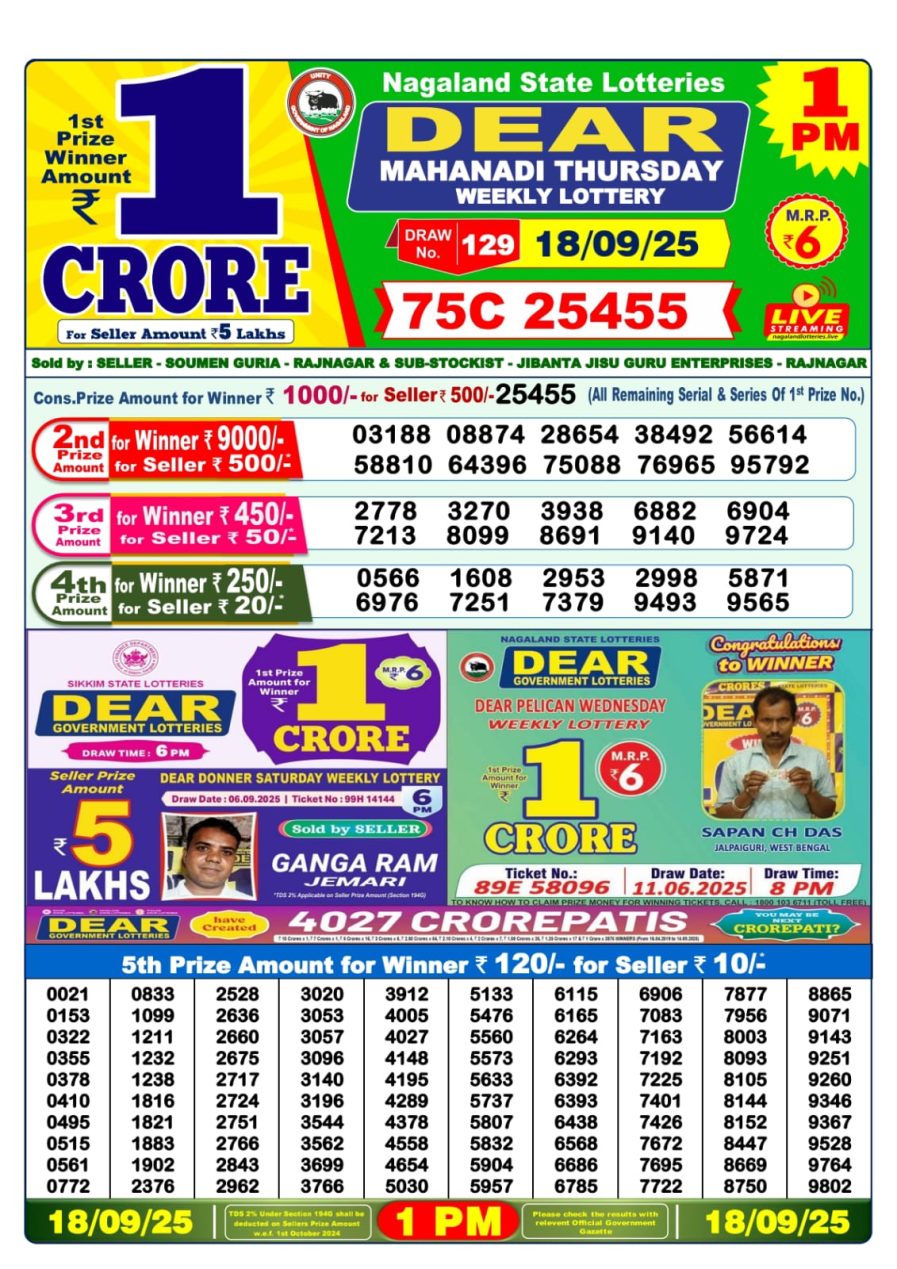Nagaland State Dear Lottery Result Declared 1PM 18/09/2025 September 18, 2025 Leave a Comment on Nagaland State Dear Lottery Result Declared 1PM 18/09/2025 Posted in Lottery Results