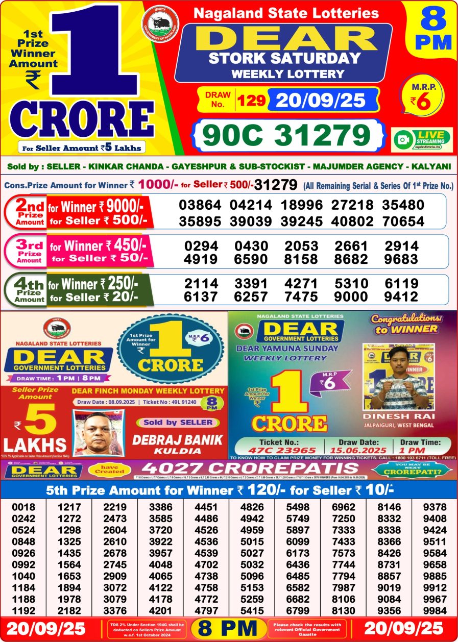 Nagaland State Dear Lottery Result Declared 8PM 20/09/2025 September 20, 2025 Leave a Comment on Nagaland State Dear Lottery Result Declared 8PM 20/09/2025 Posted in Lottery Results