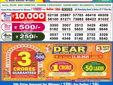 Nagaland State Dear Lottery Result Declared 1PM 10/10/2025