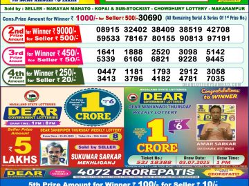 Nagaland State Dear Lottery Result Declared 1PM 09/10/2025