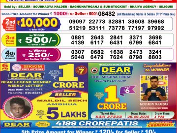 Sikkim State Dear Lottery Result Declared 6PM 09/12/2025