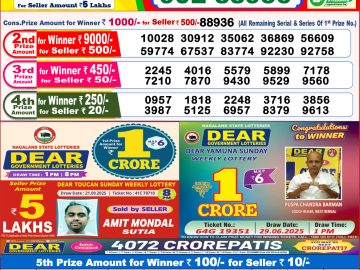 Nagaland State Dear Lottery Result Declared 1PM 07/10/2025