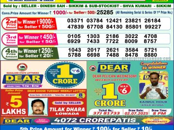 Sikkim State Dear Lottery Result Declared 6PM 07/10/2025