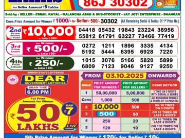 Sikkim State Dear Lottery Result Declared 6PM 03/10/2025