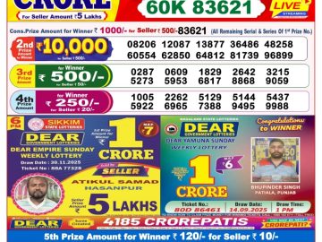 Sikkim State Dear Lottery Result Declared 6PM 01/12/2025