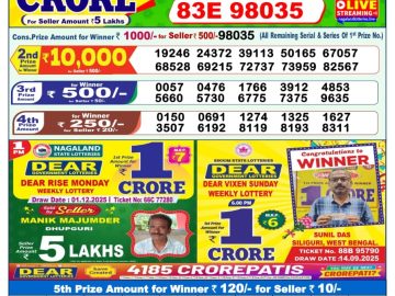 Nagaland State Dear Lottery Result Declared 1PM 01/12/2025