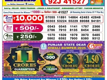 Sikkim State Dear Lottery Result Declared 6PM 25/10/2025