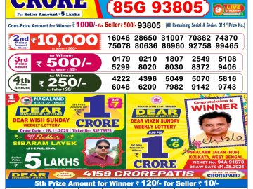 Nagaland State Dear Lottery Result Declared 1PM 23/11/2025