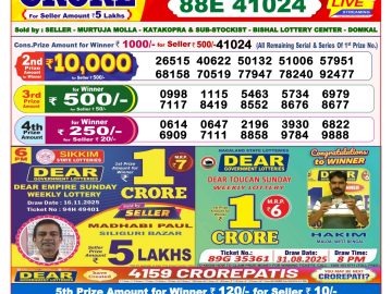 Sikkim State Dear Lottery Result Declared 6PM 23/11/2025