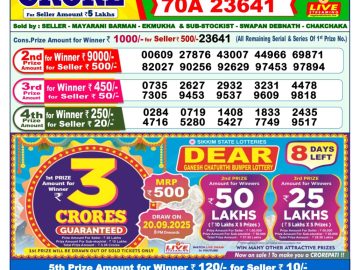 Sikkim State Dear Lottery Result Declared 6PM 13/09/2025