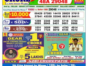 Dear Lottery Sambad Result By Rakhi Lottery Agency