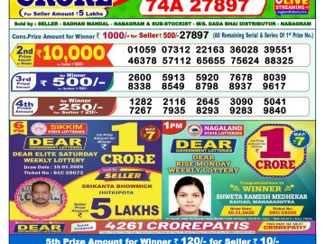 Sikkim State Dear Lottery Result Declared 6PM 10/01/2026
