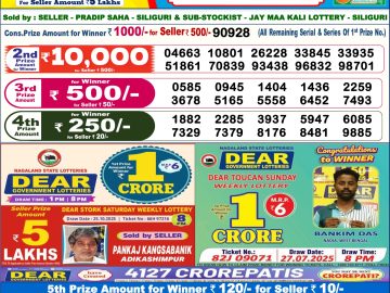 Nagaland State Dear Lottery Result Declared 1PM 07/11/2025