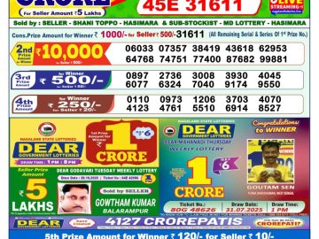 Dear Lottery Sambad Result By Rakhi Lottery Agency