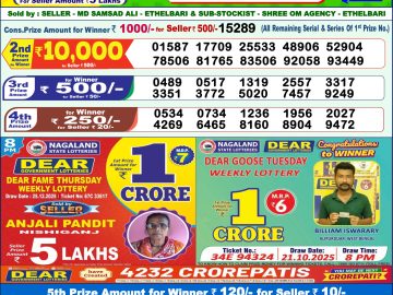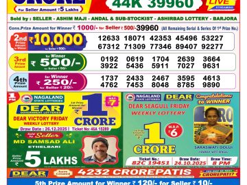 Nagaland State Dear Lottery Result Declared 1PM 27/12/2025