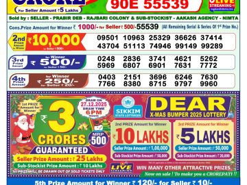 Sikkim State Dear Lottery Result Declared 6PM 26/12/2025