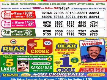 Nagaland State Dear Lottery Result Declared 1PM 23/10/2025