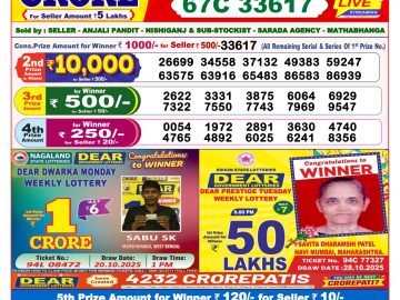 Nagaland State Dear Lottery Result Declared 1PM 24/12/2025