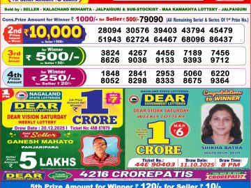 Nagaland State Dear Lottery Result Declared 1PM 21/12/2025