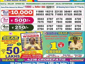 Dear Lottery Sambad Result By Rakhi Lottery Agency