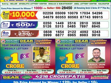 Nagaland State Dear Lottery Result Declared 8PM 20/12/2025