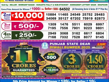 Nagaland State Dear Lottery Result Declared 1PM 17/10/2025