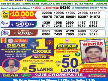 Sikkim State Dear Lottery Result Declared 6PM 19/12/2025