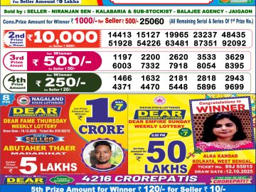 Nagaland State Dear Lottery Result Declared 1PM 19/12/2025