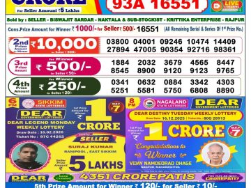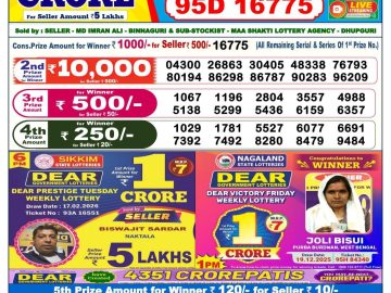 Dear Lottery Sambad Result By Rakhi Lottery Agency