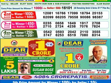 Nagaland State Dear Lottery Result Declared 1PM 16/10/2025