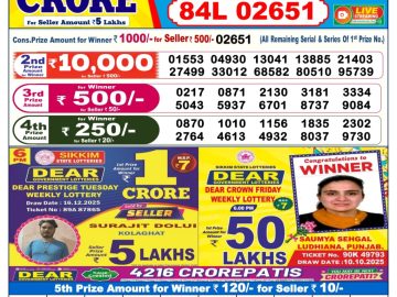 Sikkim State Dear Lottery Result Declared 6PM 17/12/2025
