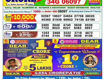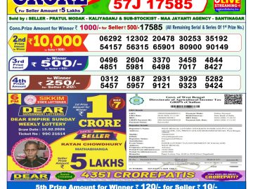 Sikkim State Dear Lottery Result Declared 6PM 16/02/2026