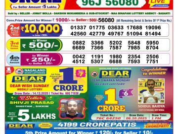 Sikkim State Dear Lottery Result Declared 6PM 14/12/2025