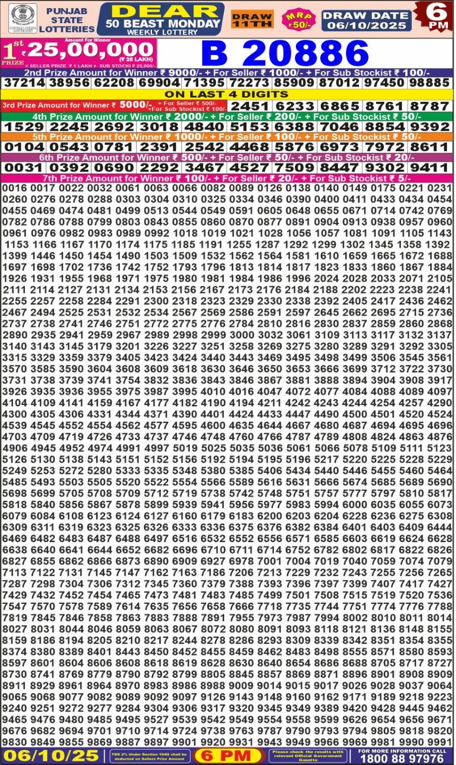 Punjab State Dear 50 Lottery Result 6PM 06/10/2025 October 6, 2025 Leave a Comment on Punjab State Dear 50 Lottery Result 6PM 06/10/2025 Posted in Lottery Results