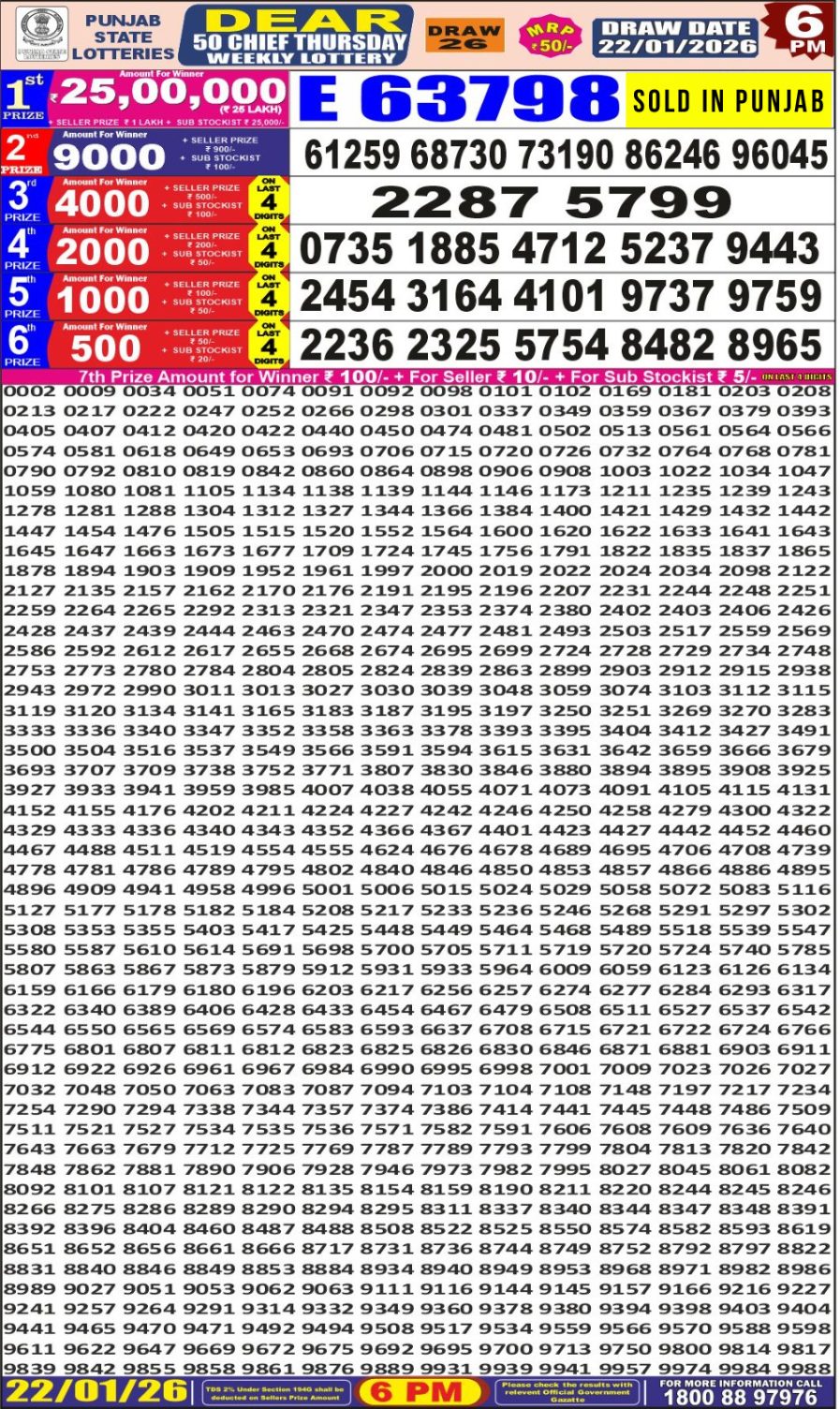 Punjab State Dear 50 Lottery Result 6PM 22/01/2026 January 22, 2026 Leave a Comment on Punjab State Dear 50 Lottery Result 6PM 22/01/2026 Posted in Lottery Results