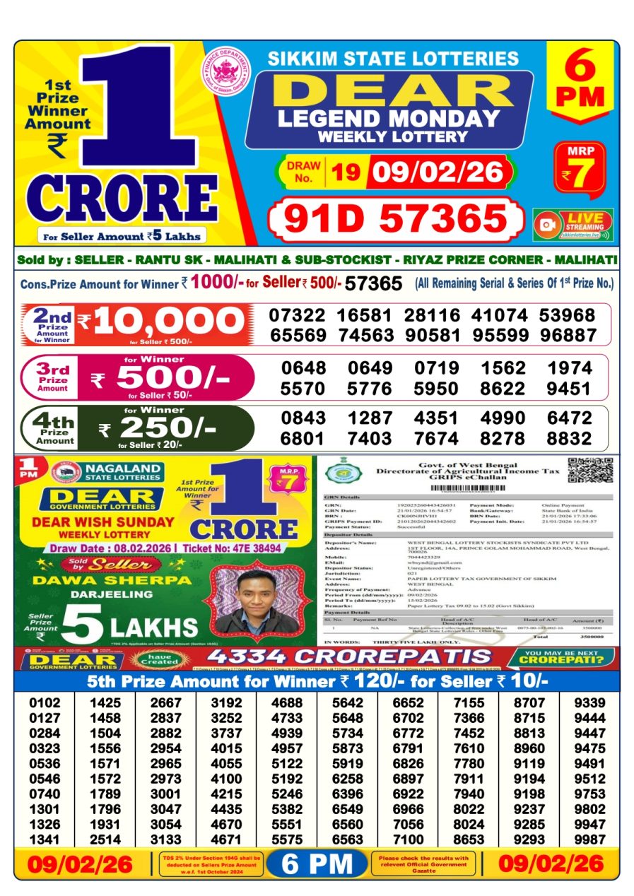 Sikkim State Dear Lottery Result Declared 6PM 09/02/2026 February 9, 2026 Leave a Comment on Sikkim State Dear Lottery Result Declared 6PM 09/02/2026 Posted in Lottery Results